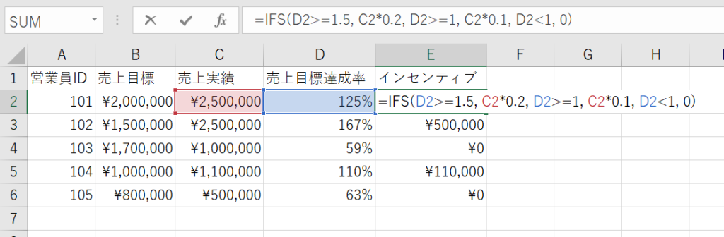 5,000~9,999円 10% =IF(B2<5000,5%,IF(B2<10000,10%,15%))